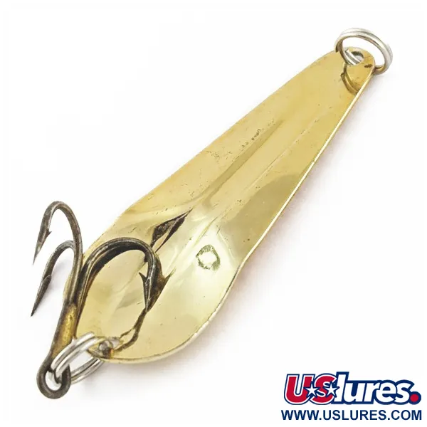Lunga 7 cm (2 3/4"), questa ondulante dorata a forma di goccia offre un profilo classico per lo spinning in acqua dolce. Il peso di 12 g (2/5 oz) garantisce versatilità a varie profondità. All'interno della parte concava è stampato il nome Haver, che richiama le origini del design di Percy Haver nei primi anni '30. La finitura placcata in oro di questa produzione James Aitken è pulita e riflette la luce in modo efficace. Il codice prodotto 24473 è conservato in condizioni 5/5, mostrando la stampatura raffinata e i bordi lisci tipici di questo produttore. La coda pesante e la punta stretta creano la tradizionale distribuzione dei pesi caratteristica dell'epoca.