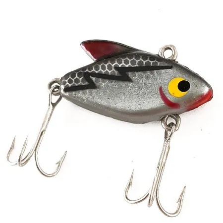 Con un profilo compatto da 3/16 oz (5 g), questo Kresge #41 rappresenta un interessante esempio di attrezzatura di produzione giapponese realizzata per Kmart. Lungo 1 1/2" (4 cm), questo artificiale metallico presenta una base argentata rifinita da una trama a nido d'ape sulla metà superiore e una decisa linea a zigzag nera lungo il fianco. La testa è dettagliata con un occhio giallo e un segno rosso sulle branchie, coordinato alla vernice rossa della piccola pinna dorsale. Identificato dal codice 12456, questo modello affondante è progettato per profondità di nuoto variabili, rendendolo una scelta versatile per lo spinning o la traina a specie come trote, persici o raganelle. Due ancorette argentate sono fissate saldamente alla parte inferiore. L'esemplare è in condizioni 5/5, mantenendo una finitura pulita e brillante su tutte le superfici, compreso l'occhiello superiore.