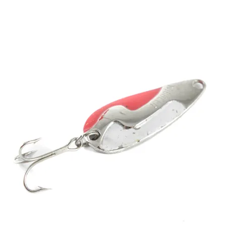 Con un peso di 7g (1/4oz), il corpo metallico di questo cucchiaino Weber della metà del secolo scorso presenta il profilo 'Kobbler' impresso direttamente sulla superficie. L'esterno nichelato da 4,5cm (1 3/4") è rifinito con una vivace colorazione rossa e bianca, una combinazione classica catalogata come Nickel / Rosso / Bianco. Sul lato convesso, il nome del modello è chiaramente stampato vicino all'occhiello, a testimonianza della sua produzione negli USA. Questo esemplare, contrassegnato dal codice prodotto 1529, è armato con la sua ancoretta originale fissata da un robusto anellino spaccato. Con una valutazione di 4/5, l'esca mostra lievi segni del tempo pur mantenendo una finitura lucida e riflettente. Resta un ottimo esempio di metalleria di medie dimensioni destinata al casting a recupero costante o alla traina leggera.