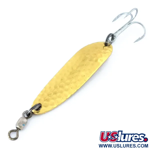 Le superfici in oro martellato come quella di questo Luhr Jensen Krocodile Die #3 sono leggendarie per catturare la luce e attirare l'attenzione a distanza in acque profonde. Punzonato chiaramente sul retro liscio con 'KROCODILE DIE #3 LUHR JENSEN HOOD RIVER, ORE.', questo particolare esemplare, identificato dal codice prodotto 10855, proviene dalle storiche radici del marchio in Oregon, USA. Con una misura di 5,5 cm (2 1/4") e un peso di 10 g (1/3 oz), il suo corpo denso e stretto è progettato specificamente per lanci a lunga distanza o per raggiungere profondità maggiori rispetto agli ondulanti standard in metallo sottile. La parte anteriore presenta una profonda trama martellata che massimizza i riflessi, mentre la finitura lucida tonalità ottone rimane eccezionalmente pulita. Questa esca è in condizioni 5/5, apparendo ben conservata con bordi netti e un gruppo girella e ancoretta originale e pulito. I pescatori si rivolgono spesso a questi ondulanti pesanti per insidiare salmoni o trote quando è necessario un profilo compatto per penetrare efficacemente la colonna d'acqua. Gli anelli spaccati sono stretti e la componentistica non mostra segni di usura, pronta per una vetrina o per tornare nel fiume.