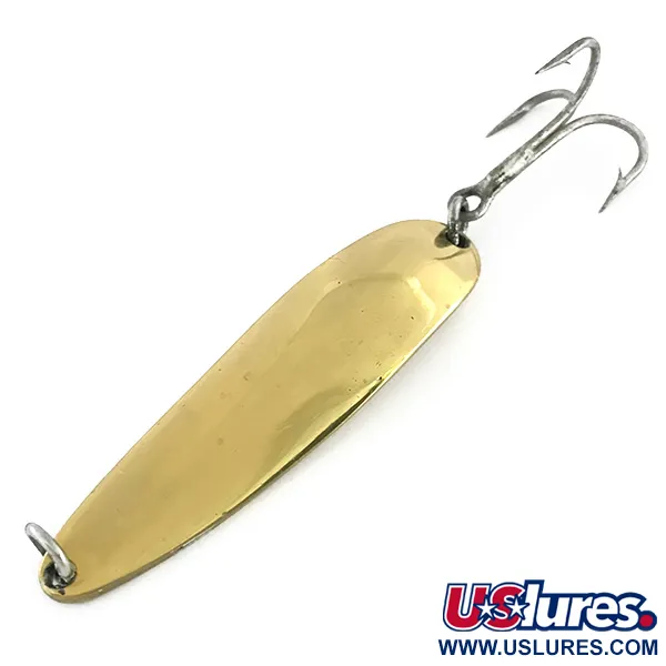 Con un peso di 2/3oz (19g), il profilo compatto di questo ondulante metallico è un segno distintivo della filosofia costruttiva di Luhr Jensen per il lancio a lunga distanza. Lungo 2 1/2" (6,5 cm), il corpo in ottone ad alto spessore è rifinito in un Oro lucido e brillante che riflette la luce in modo efficace. Il retro dell'esca presenta l'iconica stampigliatura profonda che la identifica come una "KROCODILE" Die #4 di Luhr Jensen a Hood River, Ore., una località sinonimo di attrezzatura robusta del Pacifico nord-occidentale. Questo specifico esemplare, codice prodotto 8574, appare intatto, con una valutazione delle condizioni di 5/5. La componentistica è solida, con anelli spaccati originali e un'ancoretta affilata progettata per la tenuta su pesci combattivi come salmoni o trote di lago. Grazie alla sua struttura stretta e spessa, è particolarmente amata dai pescatori da molo e da riva che devono fendere il vento per raggiungere il pesce. La classica forma a cucchiaio garantisce un movimento oscillante affidabile durante il recupero, caratteristica fondamentale del design di questo modello.