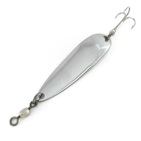 Abbastanza pesante per lanci a lunga distanza, questo ondulante da 23 g (3/4 oz) è un esempio classico della versatilità della gamma Luhr Jensen. Punzonato chiaramente sulla faccia concava interna con il nome del marchio e il marchio Krocodile, questo specifico modello Die #5, codice prodotto 7579, misura 8,5 cm (3 1/4") di lunghezza. La finitura in nichel lucido è in condizioni perfette, mantenendo la sua lucentezza originale sul corpo curvo a forma di goccia. I collezionisti apprezzeranno l'autentico artigianato americano, poiché questa esca presenta la robusta componentistica tipica della sua epoca di produzione, tra cui una girella a bariletto di alta qualità e un'ancoretta affilata fissata tramite solidi anelli spaccati. Lo spessore del metallo fornisce la densità necessaria per raggiungere gli strati d'acqua più profondi durante il recupero o il jigging verticale vicino alle strutture. Ogni dettaglio, dai bordi arrotondati del metallo alla chiara punzonatura dell'origine Hood River, Oregon, riflette la durata che ha reso questa serie un elemento essenziale nelle cassette da pesca dai Grandi Laghi alla costa del Pacifico.