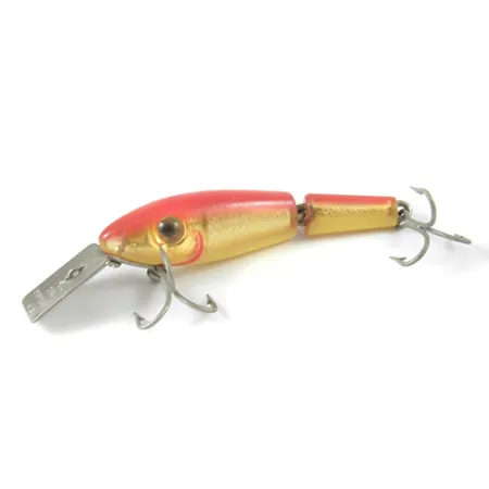 Un rosso vibrante che sfuma in fianchi dorati texturizzati ricopre il corpo snodato in due parti di questo classico americano. La paletta subacquea in metallo sovradimensionata reca un marchio profondo con la scritta "L&S SPIN MIRROLURE USA", che lo identifica come un pezzo autentico della L&S Bait Company. Dimensionato per attrezzature light con i suoi 5 cm (2") e 4 g (1/8 oz), la costruzione dell'esca utilizza una robusta cerniera metallica per unire le sezioni anteriore e posteriore. Identificato dal codice prodotto 2950, questo esemplare mantiene una valutazione di condizione 4/5, mostrando una verniciatura pulita e componenti originali ben conservati. Due ancorette argentate rimangono fissate alla pancia e alla coda, adatte per il lancio o la traina. La trama a scaglie dorate sotto la finitura fornisce il caratteristico bagliore che i collezionisti si aspettano dalla serie L&S Spin.