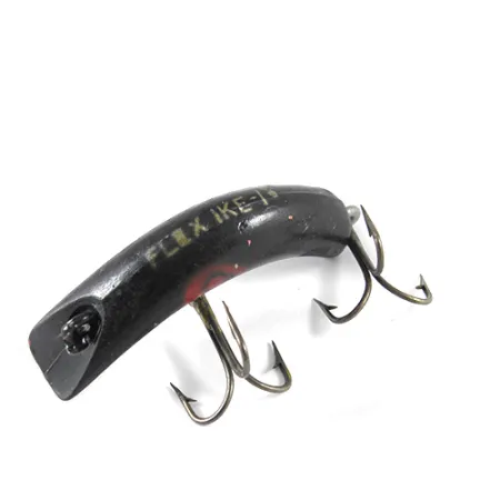 Una finitura nero profondo accentuata da macchie di colore rosse definisce l'estetica di questo classico modello 1318. Con una lunghezza di 1 3/4" (4,5 cm), l'esca presenta l'iconico corpo curvo a banana che ha reso Lazy Ike un nome famosissimo per i pescatori di tutti gli USA. La parte superiore del corpo è stampigliata con la dicitura "FLEX IKE-I", che fornisce un chiaro legame con la sua storia produttiva e la specifica linea del modello. Con un peso di 1/8 oz (3,5 g), rientra nella classe più leggera degli strumenti da traina destinati ai piccoli predatori d'acqua dolce. Questo esemplare si presenta in ottime condizioni di conservazione, valutato 4/5, con la finitura originale e i componenti metallici ancora nitidi. Le due ancorette sono fissate tramite occhielli metallici standard, pronte per la bacheca di un collezionista o per una nostalgica giornata al lago.