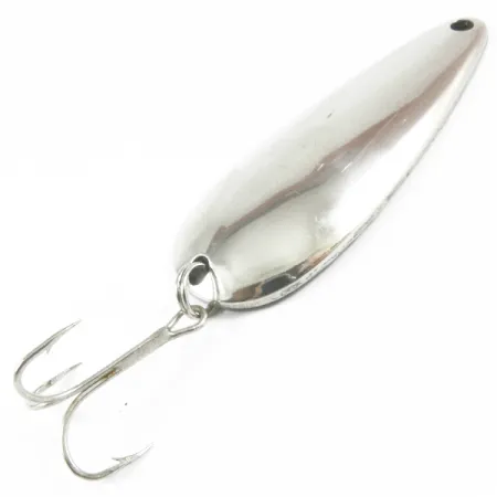 Una brillante finitura in nichel definisce il profilo classico di questo cucchiaino ondulante da 21 g (3/4 oz), un punto fermo per i pescatori fin dalla nascita del marchio nel 1929. Lungo 7 cm (2 3/4"), il Len Thompson #1 presenta un corpo in metallo spesso progettato per resistere ai denti affilati del luccio. Il lato concavo è chiaramente punzonato con il marchio del produttore "LEN THOMPSON NO. 1", a conferma del suo pedigree tra i collezionisti di attrezzatura canadese. Questo esemplare è in condizioni 5/5, con una superficie luminosa e riflettente e componenti robuste. Collegato tramite un forte anellino spaccato, l'amo triplo è ideale per la traina o il lancio mirato a trote di lago e salmoni. Riconosciuto per un'azione oscillante lenta che imita un pesce esca costante, questa specifica variante al nichel è registrata con il codice prodotto 3531.