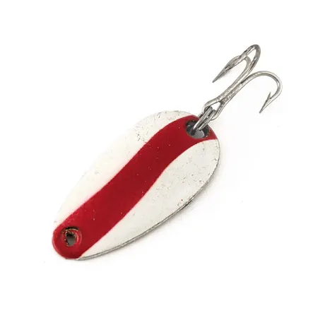 Una striscia rossa diagonale crea un forte contrasto con la faccia smaltata bianca di questo classico di produzione canadese. Questo ondulante Len Thompson #6, codice 11190, riflette una filosofia di design rimasta pressoché invariata dalla nascita del marchio nel 1929. Il corpo in ottone da 1" (2,5 cm) è chiaramente stampato sul retro con il nome del produttore e la dimensione del modello, mettendo in risalto la finitura metallica lucida. Con un peso di 1/8 oz (3,5 g), l'esca è progettata per lo spinning o la traina, imitando il profilo di un piccolo pesce esca. La componentistica è in ottime condizioni, con una robusta ancoretta e un anello spaccato. Con una valutazione di 5/5, lo smalto è ben conservato e l'ottone mantiene la sua lucentezza originale. Il suo movimento è incentrato su un'oscillazione lenta, una caratteristica tecnica famosa per scatenare gli attacchi di trote lacustri e lucci.