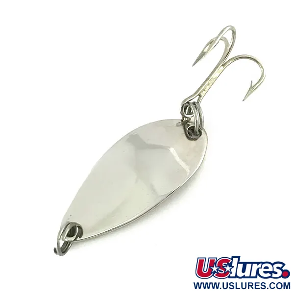 La nichelatura offre una finitura brillante e riflettente su questo ondulante vintage, rendendolo un pezzo di spicco per ogni collezione di attrezzatura da pesca. Con un peso di 1/8oz (4g) e una lunghezza di 1 1/4" (3cm), questo esemplare è un classico esempio della produzione americana di esche dell'era Seneca Lure. Prima che Acme subentrasse nella produzione all'inizio degli anni '80, Seneca produceva queste esche negli USA con un profilo a goccia profondo e una stampigliatura chiara. Il lato concavo è chiaramente stampigliato con il nome 'LITTLE CLEO' e l'hardware rimane intatto con anelli spaccati originali e un amo triplo pulito. Questa esca è in condizioni 5/5, mostrando la qualità preservata del metallo e la precisione della sua produzione iniziale. Questo modello specifico è elencato con il codice prodotto 8179.