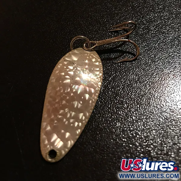 Squame martellate con un motivo "Crystal" catturano la luce sulla superficie di questo ondulante vintage da 4 cm (1 1/2"). Punzonata con il caratteristico marchio "Little Cleo Wigl-Lure A Seneca Lure", questa esca rappresenta l'era di produzione originale prima dell'acquisizione del marchio da parte di Acme nei primi anni '80. La finitura Crystal (Golden Scale) offre una superficie profondamente strutturata progettata per imitare la rifrazione della luce sulle squame dei pesci. Con un peso di 7 g (1/4 oz), l'ondulante è dotato della sua componentistica originale e di un robusto amo triplo, a testimonianza dei classici standard di produzione USA del periodo. Identificato dal codice prodotto 11102, questo esemplare è in eccellenti condizioni, con una valutazione di 5/5 per la finitura ben conservata e le nitide stampigliature sul metallo. Il design del corpo a goccia è appesantito specificamente per lanci a lunga distanza e per la traina.