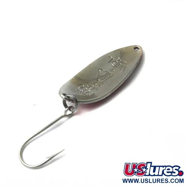 Con un peso di 1/2oz (14g), il profilo distintivo di questo classico ondulante è immediatamente riconoscibile da chiunque abbia frequentato le acque prima degli anni '80. Questo particolare esemplare, con codice prodotto 0448, è stato prodotto dalla Seneca Lure Company negli USA prima che il marchio passasse ad Acme. La faccia anteriore presenta una vivace finitura ondulata Rosso / Bianco, progettata per fornire un contrasto elevato durante il recupero. Girando l'esca si scopre la ballerina "Hula Girl" punzonata sul retro: una caratteristica leggendaria che molti pescatori della vecchia scuola ritengono superiore alle versioni successive con il retro liscio. Con una lunghezza di 2 1/4" (5,5 cm), la struttura in metallo pesante dell'ondulante rimane solida e affidabile. Con una valutazione di 4/5, l'esca mostra lievi e onesti segni del tempo, mentre la componentistica e la vernice rimangono in ottime condizioni.