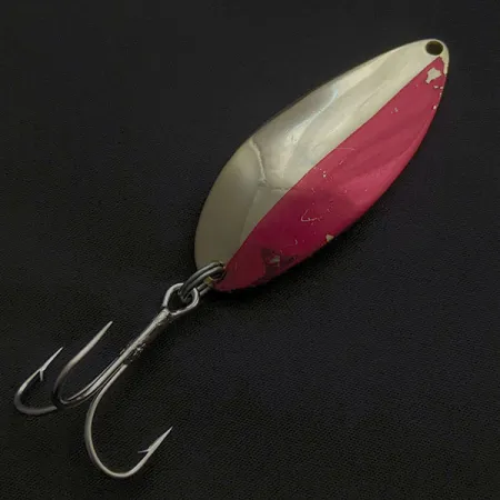 Sulla parte inferiore di questo ondulante da 3/4oz (21g) è impressa chiaramente l'iconica ballerina "Hula Girl", un segno distintivo della produzione originale della Seneca Lure Company. Questo esemplare specifico, identificato dal codice prodotto 21075, rappresenta l'epoca precedente all'acquisizione del marchio da parte di Acme Tackle nei primi anni '80, dopo la quale la grafica della ballerina fu rimossa dalla produzione. Con una lunghezza di 6,5 cm (2 1/2"), la faccia anteriore presenta una finitura bicolore oro e rosso-rosato. La metà verniciata mostra alcuni segni di usura autentici e piccole scheggiature coerenti con l'età, sebbene l'esca rimanga in condizioni eccellenti con una valutazione di 5/5. È equipaggiata con un'ancoretta robusta a curvatura larga e un solido anellino spaccato per una tenuta affidabile durante il lancio o la traina. Il corpo in ottone mantiene la sua lucentezza metallica, a testimonianza della qualità artigianale che ha reso questi ondulanti Seneca un punto di riferimento per i pescatori in tutti gli Stati Uniti.