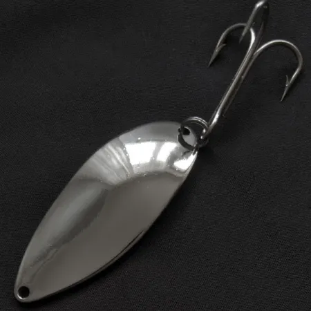 Con un peso di 21g (3/4oz), questo cucchiaino ondulante nichelato offre la massa necessaria per lanci a lunga distanza o per la traina in profondità. Il retro del corpo da 6,5 cm (2 1/2") presenta il leggendario marchio Hula Girl, un segno distintivo della Seneca Lure Co. di New York prima che il brand venisse acquisito da Acme all'inizio degli anni '80. Questo esemplare specifico, catalogato con il codice prodotto 21961, si trova in condizioni 5/5, mostrando una finitura nickel lucida a specchio che riflette brillantemente la luce sulla sua superficie curva. L'armatura include una robusta ancoretta fissata da un anellino spaccato heavy-duty, tipico della solida costruzione Made in USA di quell'epoca. I pescatori esperti cercano spesso questi Cleo originali prodotti da Seneca perché l'icona della ballerina è stata successivamente rimossa dalle produzioni Acme, nonostante molti veterani giurino che fosse proprio lei il segreto del successo storico di questa esca.