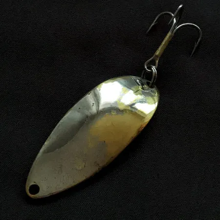 Una suggestiva finitura bicolore in nichel e ottone definisce questo classico ondulante, caratteristica che si abbina al suo peso consistente di 18g (2/3oz). Con una lunghezza di 5,5cm (2 1/4"), questo specifico esemplare, catalogato con il codice prodotto 22214, è un autentico pezzo di storia della pesca della Seneca Lure Company. Risale all'epoca precedente all'acquisizione del marchio da parte di Acme, avvenuta nei primi anni '80. I collezionisti ricercano la variante "Hula Girl" per l'iconica ballerina incisa sul retro, un dettaglio assente nelle produzioni moderne. Molti pescatori veterani sostengono ancora che questa piccola incisione fosse il segreto del leggendario successo dell'esca in acqua. L'hardware rimane funzionale, con una robusta ancoretta collegata tramite un solido anellino spaccato. Valutato con una condizione di 3/5, il corpo mostra i segni di un lungo utilizzo, con la placcatura bimetallica che riflette ancora efficacemente la luce. Questo ondulante da casting prodotto negli USA rappresenta il design originale di un'esca che resta un punto di riferimento per i pescatori di trote e salmoni.