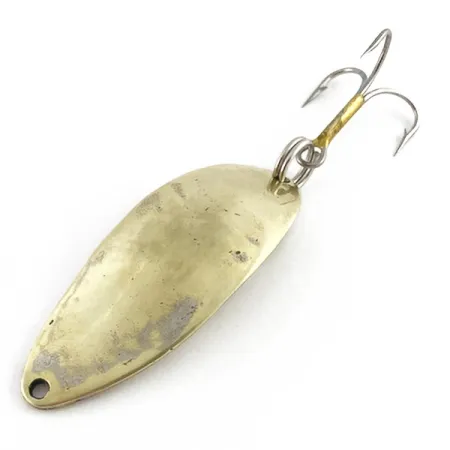 Toni di ottone e una caratteristica ballerina incisa definiscono questo classico esemplare da 2 1/4" (5,5 cm). Con un peso di 1/2 oz (14 g), questa Little Cleo (Hula Girl) presenta il raro timbro originale "WIGL LURE" e la celebre silhouette della ballerina di hula, molto ricercata dai collezionisti. Prodotta dall'azienda Seneca Lure prima dell'acquisizione del marchio da parte di Acme nei primi anni '80, questa specifica versione (codice prodotto 23492) rappresenta l'epoca in cui le grafiche erano parte integrante dell'identità dell'esca. La finitura dorata mostra segni di utilizzo e invecchiamento superficiale, con una valutazione dello stato pari a 3/5, tuttavia l'incisione rimane chiaramente visibile sul lato convesso. Una robusta ancoretta è fissata tramite un anello spaccato ad alta resistenza nella parte posteriore, mentre un singolo foro per l'aggancio della lenza si trova sulla punta. Storicamente, i pescatori hanno attribuito il successo del design all'iconica grafica della ballerina, che è poi scomparsa nelle serie di produzione successive.