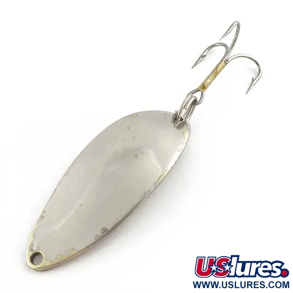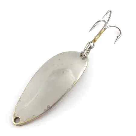 Con l'iconica ballerina "Hula Girl" incisa sul retro, le superfici in nichel e oro di questo cucchiaino ne sottolineano le origini vintage della Seneca Lure Company. Questo esemplare, identificato dal codice prodotto 23514, misura 5,5 cm di lunghezza e ha un peso consistente di 14 g (1/2 oz). La parte posteriore reca le incisioni "LITTLE CLEO" e "WIGL LURE", segni distintivi di un'epoca di produzione precedente alla semplificazione del design operata da Acme nei primi anni '80. Molti pescatori esperti sostengono che la presenza della ballerina incisa sia il segreto dello storico successo di questa esca in pesca. L'armo è composto da un classico anellino spaccato e un'ancoretta. Mostrando i segni del tempo con un grado di conservazione di 3/5, la finitura metallica riflette la qualità artigianale dell'attrezzatura d'epoca prodotta negli USA, progettata per lo spinning e la traina.