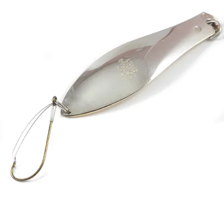 La placcatura bimetallica è un segno distintivo di questo design classico, caratterizzato da un netto contrasto tra le finiture in oro e nichel brillante. Stampato chiaramente nel metallo, il marchio "Little Doctor 275" rimane nitido sul lato concavo dell'ondulante, che misura 9 cm. Questo esemplare Prescott Spinner, identificato dal codice prodotto 1960, pesa 21 g, fornendo massa sufficiente per lanci a lunga distanza o per raggiungere le profondità della colonna d'acqua. La componentistica è particolarmente interessante, consistendo in un grande amo singolo dotato di una protezione antialga in filo metallico per agevolare il recupero tra la vegetazione sommersa. Classificata con una condizione di 5/5, la superficie mantiene una lucentezza brillante e specchiata. Un robusto anello spaccato in testa assicura un collegamento affidabile per il finale. Prodotta negli USA, la fattura è robusta e l'amo singolo rimane affilato di fabbrica e saldamente fissato.