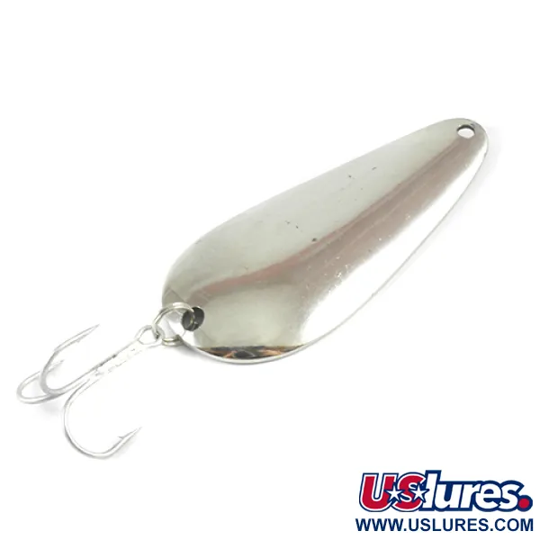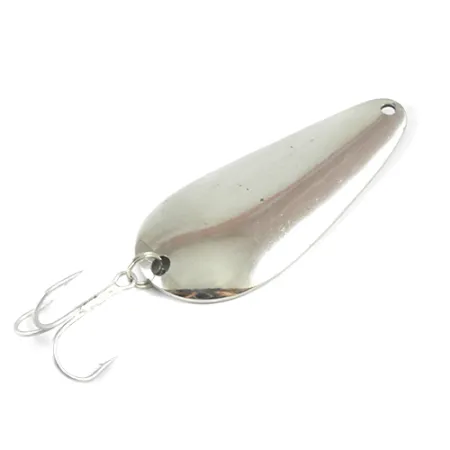 Le finiture al nichel come quella di questo ondulante da 3" (7,5 cm) erano un punto fermo per Lindy / Little Joe, offrendo un'elevata visibilità in varie condizioni d'acqua. Stampato con il nome "Little Joe", questo classico ondulante in metallo pesa 3/5 oz (17 g), rendendolo una scelta sostanziale sia per il lancio che per la traina. Questo esemplare, identificato dal codice prodotto 2971, mette in mostra la schietta manifattura americana che ha definito la produzione del marchio negli USA. L'ancoretta è fissata saldamente tramite un robusto anellino spaccato, un design semplice ma efficace che ha resistito alla prova del tempo. In termini di condizioni, la superficie riflettente rimane brillante e ben conservata, meritando un punteggio di 4/5. Osservando da vicino il lato convesso, le linee pulite della forma a goccia sono caratteristiche del design degli ondulanti della metà del secolo, destinati a catturare la luce. Il foro sulla testa è punzonato in modo pulito, pronto per un moschettone o per il legame diretto della lenza.