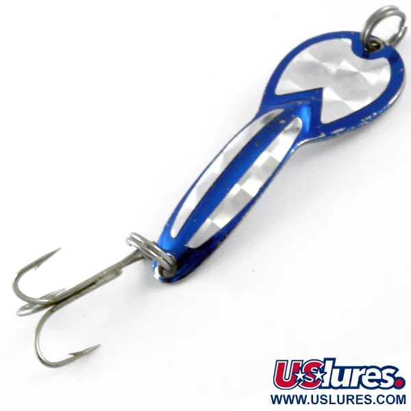 Sul retro del corpo metallico sono stampigliati l'identificativo "LOCO" e la taglia "2". Con un peso di 7 g (1/4 oz) e una lunghezza di 5 cm (2"), questo classico di Glen Evans è riconoscibile per la sua vibrante finitura blu abbinata a un inserto olografico geometrico argento. Per il collezionista attento alle varianti, questo modello riporta il codice prodotto 4400. Sebbene sia progettato per lo spinning o la traina, è particolarmente indicato per la pesca al luccio in acque ferme a profondità fino a 1 m (3,3 ft). L'esca è nota per il suo nuoto molto vivace durante il recupero. Per quanto riguarda lo stato fisico, il rivestimento blu rimane brillante con una lieve usura visibile lungo i bordi, portando questa unità a una valutazione di 5/5. È rifinito con anelli spaccati in stile originale e un'ancoretta affilata.