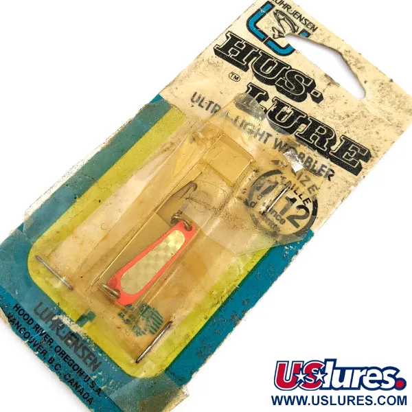 Una finitura accattivante con bordi rossi e un motivo a scaglie in rilievo definisce questo ondulante ultra-light da 2,6 cm (1"). Con un peso di 2,4 g (1/12 oz), il Luhr Jensen Hus-Lure è stato progettato con un profilo sottile studiato appositamente per tagliare le correnti superficiali dei torrenti, raggiungendo le profondità dove spesso stazionano i pesci più grandi. Questo specifico esemplare, identificato dal codice prodotto 20062, non è mai stato utilizzato e si conserva nella sua confezione originale a bolla. Il cartoncino vintage riflette la storia del marchio in due paesi, citando le sedi di Hood River, Oregon, e Vancouver, B.C. Classificato come Taglia 112 "Ultra-Light Warbler", la costruzione punta su un corpo metallico compatto, ideale per il lancio o per lasciare che la forza della corrente animi l'esca. Il retro della confezione mette in risalto la serie "Legends" di Luhr Jensen, affiancando questo Hus-Lure ad altri grandi classici come il Krocodile e il Kwikfish.