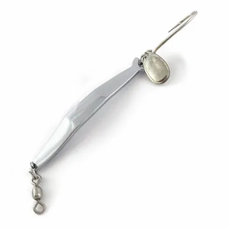 Con un peso di 1/2oz (14g), questo esemplare di produzione americana rappresenta l'artigianato specializzato dell'era Luhr Jensen precedente all'acquisizione Rapala. La finitura Nickel lucida di questo Kokanee King, codice prodotto 23916, si mantiene eccezionalmente brillante e nitida. Con una lunghezza di 3" (7,5 cm), il corpo presenta una caratteristica piccola paletta metallica a goccia posizionata proprio sull'occhiello dell'amo singolo fisso. Questo design specifico include una robusta girella barrel montata sull'occhiello anteriore, progettata per la tensione costante tipica della traina. Date le sue condizioni 5/5, le superfici metalliche sono pulite e prive di segni, rendendolo un eccellente esempio di questa rarità prodotta negli USA. La punta dell'amo rimane affilata e originale, preservata dall'ottimo stato dell'artificiale.