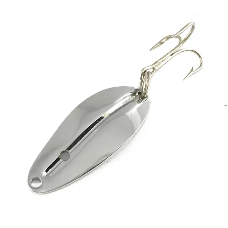 Con un peso esatto di 7 g (1/4 oz), questo classico ondulante in metallo presenta una finitura in nichel lucido che mantiene un'elevata riflettenza. Prodotto dall'azienda americana TODDCO, il Main liner è stato una scelta popolare tra i pescatori fino al termine della produzione nel 1980. Il corpo da 4 cm (1 1/2") è stampato in una forma a goccia aerodinamica, caratterizzata da due fori distinti: uno in punta per l'attacco del filo e un secondo posizionato lungo la cresta convessa centrale. Questo specifico esemplare, catalogato con il codice prodotto 7338, ha una valutazione delle condizioni di 5/5, mostrando una superficie a specchio pulita su tutta la paletta. L'esca è armata con il suo ancorotto originale, fissato da un anello spaccato standard per un lancio o una traina affidabile. Prodotto negli USA, la sua struttura solida riflette gli standard manifatturieri della metà del secolo che hanno definito il marchio TODDCO.