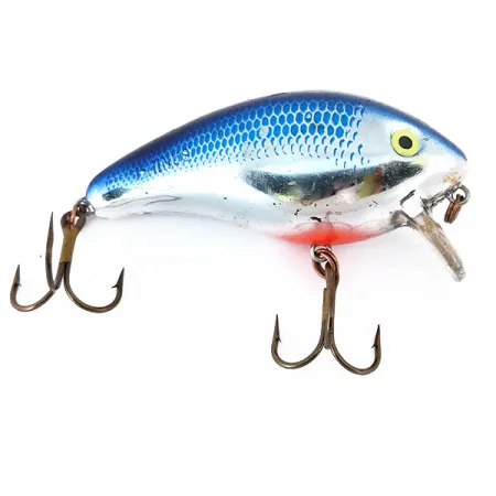 La finitura scintillante Chrome Blue Back di questo modello da 28 g (1 oz) garantisce un'elevata visibilità nelle acque basse. Questo Mann's 1-Minus, identificato dal codice prodotto 11027, è progettato per operare a una profondità ridotta di 0,5 m (1,6 ft), consentendo lanci o traina efficaci sopra le strutture sommerse. Il corpo galleggiante da 8 cm (3 1/4") include un sistema di rattling interno per generare suono durante il movimento nella colonna d'acqua. Le condizioni fisiche sono valutate 5/5, mostrando una superficie riflettente pulita e vivaci scaglie blu sull'area dorsale. Il design presenta una paletta corta e trasparente e una notevole macchia rosso-arancio sulla gola, abbinata a due ancorette bronzate originali. Originario degli USA, questa esca della Mann's Bait Company è una scelta standard per insidiare lucci, persici e aspi. Gli occhi gialli con pupille nere fungono da punto focale sulla testa cromata, caratteristica dell'estetica vintage del marchio.