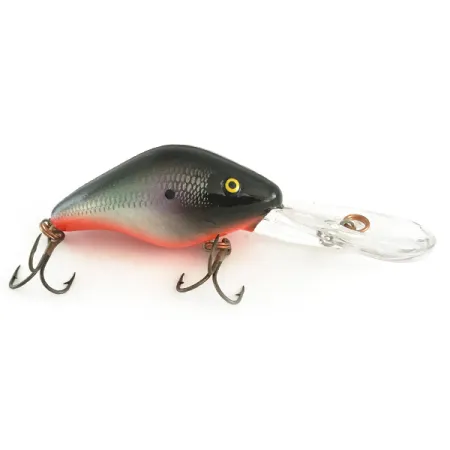 La scagliatura sui lati di questo Mann's 30+ Depth Plus crea una texture sottile che cattura la luce sulla sua finitura nera e rosso-arancio. Contrassegnato dal codice 6636, questo deep-diver specializzato presenta una massiccia paletta trasparente progettata per raggiungere profondità fino a 5 m (16,4 ft), sia a lancio che a traina. Il corpo misura 5,5 cm (2 1/4") e pesa 14 g (1/2 oz), fornendo la massa necessaria per raggiungere le strutture profonde. La livrea è un pattern ad alto contrasto, con un dorso nero profondo che sfuma in fianchi argentati scagliati con un evidente punto laterale, terminando in una pancia rosso-arancio brillante. Rifinito con occhi gialli, l'artificiale mantiene una condizione impeccabile di 5/5, con hardware e verniciatura in ottimo stato. L'occhiello di aggancio è posizionato direttamente sul centro rinforzato della paletta per gestire la pressione del recupero in profondità. Entrambe le ancorette sono affilate e fissate da robusti anelli spaccati.