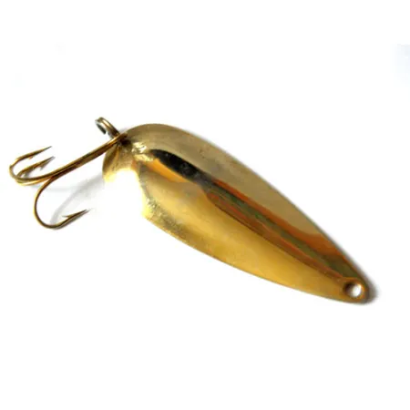 Il corpo in ottone conferisce a questo artificiale da 14 g (1/2 oz) una consistenza solida, immediatamente riconoscibile da ogni pescatore esperto. Con una lunghezza esatta di 7 cm (2 3/4 pollici), l'ondulante Marathon presenta un profilo a goccia pulito, progettato per lo spinning o la traina in acqua dolce e salata. Prodotto sotto il marchio Marathon negli USA, il corpo in metallo reca il marchio distintivo del produttore sulla parte interna concava. La componentistica consiste in un robusto amo triplo collegato tramite un affidabile anello spaccato, riflettendo l'assemblaggio originale di fabbrica. Poiché questo esemplare è inutilizzato (Condizione 6), le superfici in ottone mantengono la loro lucentezza originale senza segni di usura. Il codice 0000 identifica questo pezzo specifico all'interno di una collezione curata.
