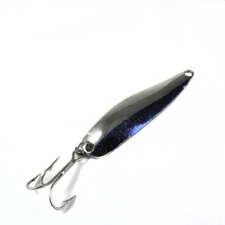 Con un peso leggero di 8g (1/4oz), il corpo sottile di questo ondulante di fabbricazione americana mette in mostra una distintiva estetica bicolore. Una metà del lato convesso è rifinita in nichel lucido e brillante, mentre l'altro lato è rivestito con una vernice metallizzata blu profondo con sottili accenti di glitter. Sul retro sono impressi chiaramente il nome Marathon e l'origine USA, segni distintivi della produzione di articoli da pesca della metà del secolo. Con una lunghezza di 6cm (2 1/4"), l'attrezzatura consiste in un classico amo triplo collegato da un affidabile anello spaccato. Le condizioni sono un solido 4/5, con una superficie pulita e punte degli ami affilate, che riflettono un'attenta conservazione nel corso degli anni. Questo particolare modello 0387 è un elemento fondamentale per chi insidia trote o persici dove è richiesto un profilo più piccolo.