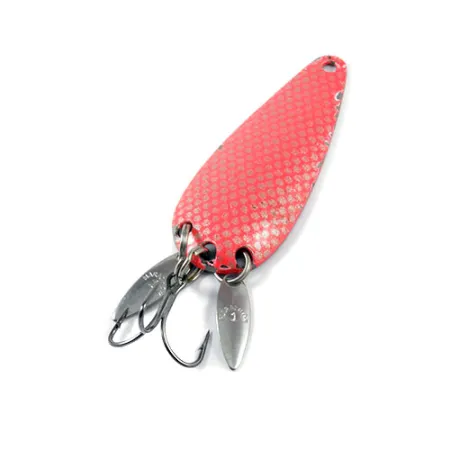 La finitura rossa con trama a scaglie di questo ondulante offre un contrasto elevato rispetto al retro in nichel lucido. Prodotto dalla Marathon Bait Company del Wisconsin, operativa tra il 1929 e il 1979, questo esemplare da 6 cm (2 1/4") con codice prodotto 3002 dimostra l'approccio innovativo del marchio nella minuteria. Con un peso di 12 g (2/5 oz), il corpo nichelato è armato in modo unico con due piccole palette soniche allungate fissate agli anelli spaccati insieme all'amo triplo. Questi petali argentati sono posizionati per riflettere la luce, nascondendo efficacemente la punta dell'amo e imitando il guizzo visivo della pinna caudale di un pesce esca. L'esca è in condizioni 4/5, con una leggera usura che ne preserva il fascino storico. Chiare punzonature "Marathon" sono presenti sul retro del cucchiaio principale e sulle singole palette soniche.
