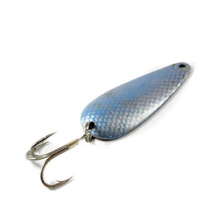 Una distintiva finitura a scaglie blu e nichel copre il lato convesso di questo ondulante da 6 cm (2 1/4"), offrendo un aspetto strutturato che è stato un punto fermo per i pescatori del Wisconsin per decenni. Lo stampaggio sul retro in nichel lo identifica come un autentico Marathon, prodotto dalla Marathon Bait Company che ha prodotto esche negli USA tra il 1929 e il 1979. Con un peso di 9 g (1/3 oz), l'esca conserva l'ancoretta originale e riporta il codice prodotto 3015. Le sue condizioni 4/5 sono caratterizzate da una leggera usura superficiale che rivela il corpo in nichel lucido sotto la vernice a scaglie blu, mantenendo intatto il carattere vintage mentre il metallo rimane pulito. Le scritte stampate sul retro rimangono nitide, fornendo un chiaro legame con la lunga storia di produzione di attrezzatura da pesca dell'azienda nel Midwest americano.