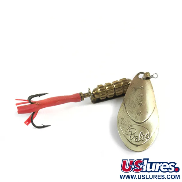 Punzonato con i marchi "BREVETE SGDG" e "MADE IN FRANCE" sul retro della pala, questo cucchiaino rotante di metà secolo illustra l'alta qualità dell'artigianato francese commissionato dall'azienda americana Marathon negli anni '50. Il Marathon Valse, identificato dal codice prodotto 2970, presenta una colorazione in ottone massiccio in tutta la sua struttura, dalla pala a goccia al corpo zavorrato a quattro livelli. Con una lunghezza di 7,5 cm (3") e un peso di 12 g (2/5 oz), offre una massa considerevole per il lancio. La pala è caratterizzata da tre stelle in rilievo poste sopra un logo "Valse" in corsivo, un segno distintivo dell'estetica di questo specifico modello. Un vivace tubicino in plastica rossa copre il gambo dell'ancoretta, fornendo un punto di attacco per i pesci che inseguono l'esca. Presentata in condizioni 4/5, l'esca mostra un'usura minima, mantenendo una finitura pulita sui componenti metallici e sulla minuteria originale. La pala montata su staffa è progettata per ruotare attorno all'asse centrale, abbinata a un corpo segmentato che fornisce un profilo bilanciato durante il recupero.