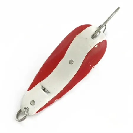 Con una lunghezza di 5,5 cm (2 1/4"), questo cucchiaino ondulante in metallo presenta un classico design americano con un caratteristico motivo ondulato rosso e bianco. Il Master Weedless Lotta Junior, identificato dal codice prodotto 23969, è una rarità degna di nota per i collezionisti che apprezzano l'attrezzatura prodotta negli USA e progettata per la pesca in zone con fitta vegetazione. Con un peso di 12 g (2/5 oz), la struttura si basa su un robusto corpo rivettato che fissa un amo singolo antierba, protetto da una guardia metallica per muoversi tra la vegetazione intricata. La finitura della vernice rimane brillante e pulita, meritando una valutazione delle condizioni di 5/5 per il suo stato ben conservato. Un robusto anello spaccato è fissato in testa, sottolineando la durevolezza e l'utilità previste per questo modello. Il lato opposto del metallo riflette la luce, fornendo un bagliore ad alto contrasto rispetto alla superficie superiore verniciata. Questa specifica misura junior lo rende uno strumento versatile per insidiare black bass o lucci in letti di alghe dove i cucchiaini standard potrebbero incagliarsi.