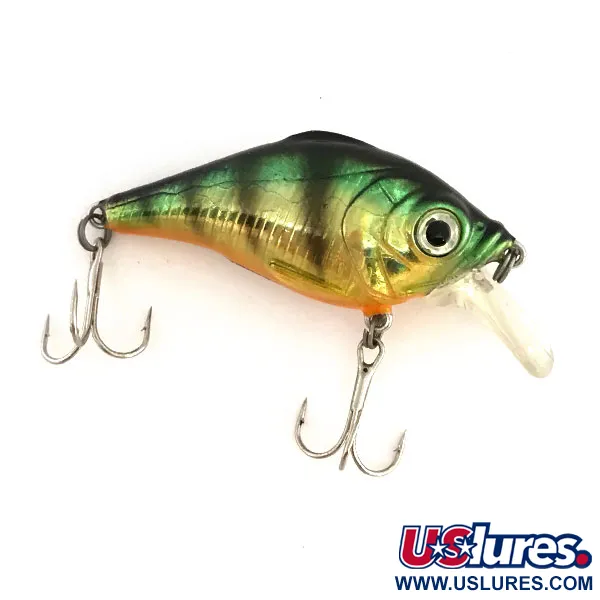 Lungo 5 cm (2"), questo crankbait galleggiante di Matzuo sfoggia una livrea Persico metallizzata ad alta visibilità sul suo corpo compatto. Questo modello, identificato dal codice prodotto 9147, pesa 7 g (1/4 oz) ed è progettato per lo spinning in acque basse con una profondità di nuoto compresa tra 0,3 m e 0,9 m (1-3 ft). La finitura è caratterizzata da un dorso verde smeraldo intenso che sfuma in fianchi giallo-oro, segnati da distinte barre verticali scure e una tenue sfumatura arancione lungo la gola. È dotato di una paletta arrotondata trasparente e di due ancorette con finitura argentata in condizioni eccellenti (5/5). I grandi occhi realistici sono incassati profondamente nella testa, conferendo un profilo naturale, mentre la squamatura cromata riflette la luce anche in acque torbide. Ogni componente, dagli anellini spaccati alla ferramenta ventrale, è pulito e pronto per la pesca.