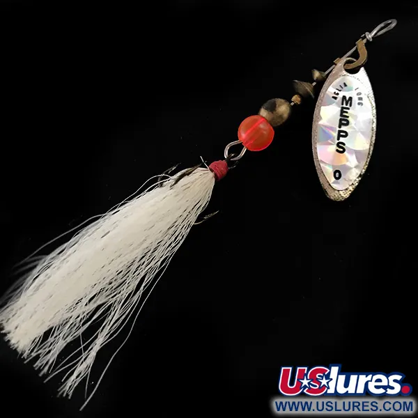 Una pala argentata a foglia di salice, punzonata con il classico marchio Mepps, definisce questo modello Aglia Long 0, identificato dal codice prodotto 5373. Con un peso di 3g e una lunghezza di 5cm, questo rotante di produzione francese presenta un'ancoretta piumata con pelo di cervo bianco, una scelta progettuale usata tradizionalmente per fornire un bersaglio visivo più voluminoso. La pala è dotata di un adesivo olografico prismatico che aggiunge bagliori multicolore alla finitura argento. Sopra l'ancoretta vestita, l'assemblaggio è composto da una perla rossa vibrante seguita da distanziali in ottone e metallo brunito sull'asse in acciaio. Il retro della pala riporta la scritta "AGLIA LONG MADE IN FRANCE", mentre il fronte mostra "MEPPS 0" in grassetto. Questo esemplare si presenta in ottime condizioni con una valutazione di 5/5, mantenendo l'integrità della coda piumata e la nitidezza dei marchi sulla pala. La serie Aglia Long è stata sviluppata in Francia per utilizzare una forma di pala specifica che mantiene un angolo di rotazione stretto durante il recupero costante.