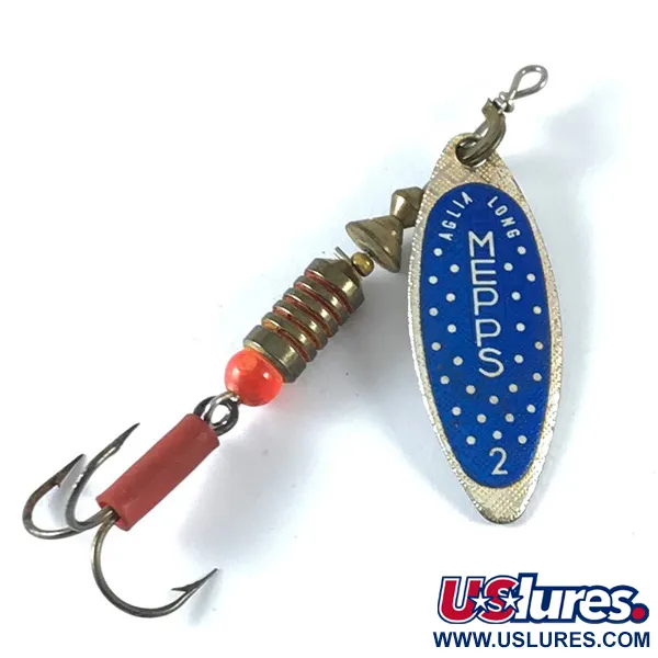 Archivio museo: Mepps Aglia Long 2 Cucchiaino, Nickel / Blu, 7.4g, Foglia Salice, #3653