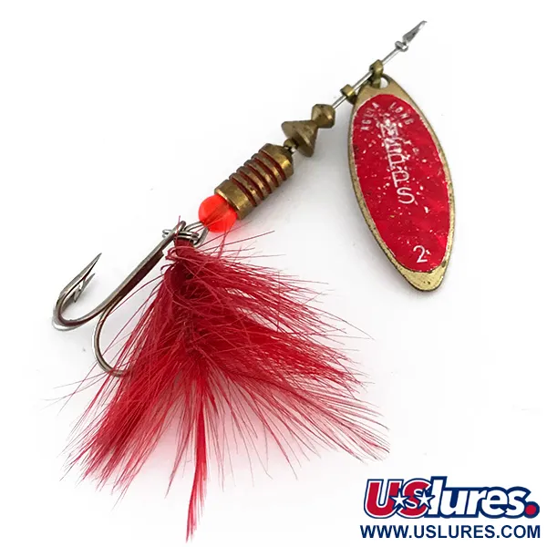 Un vivace ciuffo di piume rosse adorna l'ancoretta di questo esemplare, definendolo come una classica variante piumata di un leggendario design di cucchiaino rotante. La pala a foglia di salice, caratteristica della serie Long, presenta un lato rosso intenso con l'incisione della taglia 2, mentre il rovescio dorato mostra con orgoglio il marchio "Made in France". Con un peso di 7,3 g (1/4 oz) e una lunghezza di 7 cm (2 3/4"), la struttura dell'esca è costruita attorno a un robusto asse in metallo. Quest'asse sostiene una serie di segmenti del corpo in ottone, tra cui un caratteristico peso scanalato e cilindri zigrinati, seguiti da una perla arancione ad alta visibilità. Questi componenti metallici e la superficie verniciata della pala sono eccezionalmente ben conservati, meritando una valutazione di 5/5. Catalogato con il codice prodotto 8258, questo rotante è stato assemblato negli USA utilizzando questi componenti francesi di alta qualità. La combinazione dell'ottone dorato e degli accenti rossi offre un profilo ad alto contrasto che mette in risalto la maestria dell'hardware originale.