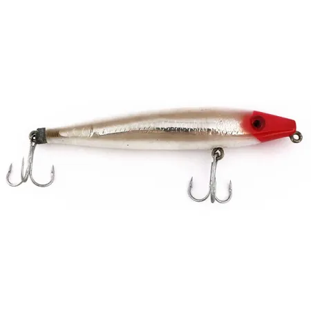 Con un peso di esattamente 1/2 oz (14 g), questa esca di superficie prodotta negli USA è un classico esempio dell'artigianalità di L&S Bait Mirro lure. Il MirrOlure Top Dog, identificato dal codice prodotto 10219, misura 4 1/4" (10,5 cm) ed è costruito con un design galleggiante specifico per la presentazione topwater. Questo esemplare presenta una vistosa testa rossa che sfuma in un corpo argento perlato, una combinazione di colori ad alta visibilità preferita da chi insidia lucci e grossi persici. L'attrezzatura consiste in due robusti ami tripli — uno ventrale e uno in coda — fissati con durevoli supporti metallici. Un semplice occhio nero è incastonato nella sezione della testa rossa, fornendo un chiaro punto focale. Questa particolare esca è in ottime condizioni, con una finitura molto ben conservata che merita una valutazione di 5/5. Un collare metallico svasato è presente sull'attacco dell'amo di coda, un dettaglio specifico dell'assemblaggio di questo walker galleggiante.
