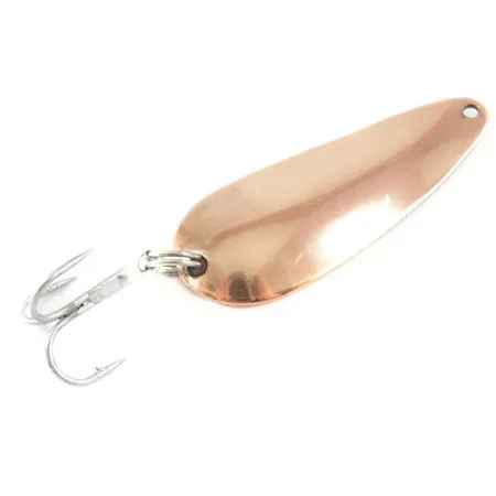 Il marchio "NEBCO" "FLASH BAIT" 266, punzonato chiaramente sulla superficie interna in rame, identifica questo ondulante prodotto a Minneapolis, Minnesota. L'esca mantiene una finitura in rame brillante e riflettente su tutto il corpo da 5,5 cm (2 1/4 pollici), con una valutazione dello stato di conservazione di 5/5. Con un peso di 10 g (1/3 oz), è efficace per il lancio o la traina leggera in varie condizioni d'acqua. La componentistica è estremamente pulita, con un amo triplo argentato fissato tramite un anello spaccato alla base. I collezionisti cercano spesso questi artificiali del Minnesota per la loro punzonatura definita e il valore storico regionale. Questo esemplare è censito con il codice 2929.