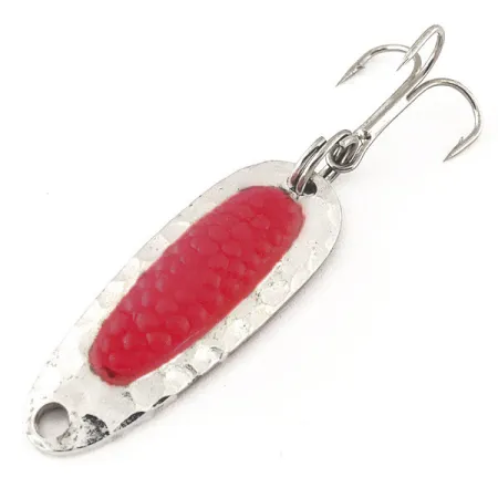 Un vibrante inserto che simula un uovo di salmone rosso è il fulcro di questo ondulante da lancio da 3,5 cm (1 1/2"), fornendo un richiamo visivo sulla finitura in nichel martellato. Identificato dal codice prodotto 12188, questo Nebco Pixee pesa 4,5 g (3/16 oz) e presenta un corpo in ottone ad alto spessore progettato per la stabilità in correnti sostenute o per lanci a lunga distanza. Originario della National Expert Bait Company, il predecessore del moderno marchio Blue Fox, questo artificiale è una scelta classica per salmone e steelhead. La texture martellata cattura la luce da ogni angolazione, mentre l'inserto rosso emette un bagliore distinto in condizioni di scarsa illuminazione, imitando l'aspetto di vere uova di pesce. La componentistica include una robusta ancoretta collegata tramite un resistente anellino spaccato. Presentato in condizioni 5/5, l'esemplare mostra una finitura brillante ed è privo di qualsiasi segno di usura.