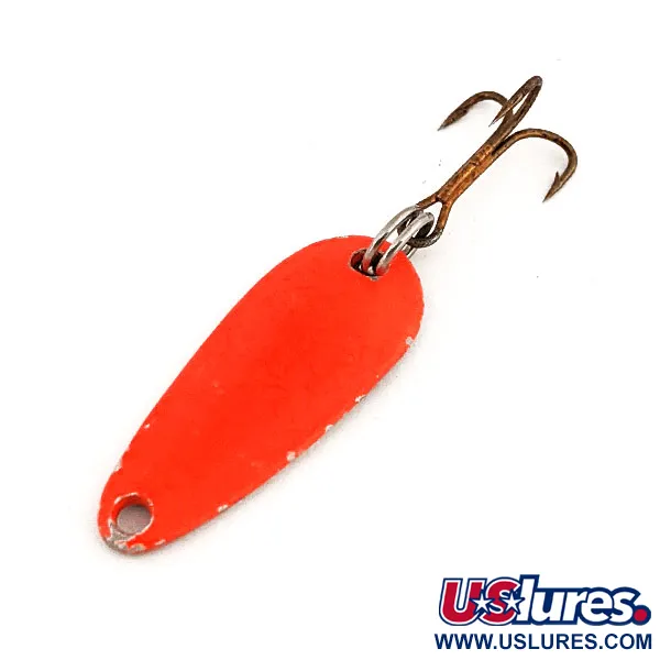 Con una lunghezza di esattamente 3 cm (1 1/4"), questo ondulante vintage offre un profilo a goccia distintivo, progettato per applicazioni light tackle. Il modello presenta una finitura arancione ad alta visibilità sulla faccia anteriore che, come suggerisce il nome Otto's Ace UV, brilla intensamente se esposta alla luce ultravioletta. Con un peso di 3g (3/32oz), l'esca è identificata dal codice prodotto 12763 ed è stata prodotta negli USA. Il retro color argento completa il frontale arancione brillante, mentre l'armatura consiste in un singolo anellino spaccato e un'ancoretta. Valutata con un punteggio di condizione 5/5, l'esca mostra una leggera usura sui bordi della vernice e una tonalità scurita sulla superficie metallica dell'amo.