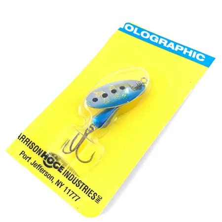 Splendente con una finitura olografica Blue Trout, questo esemplare presenta una palletta stampata con quattro punti scuri distinti su una sfumatura blu e argento. Si tratta di un esemplare inutilizzato del Panther Martin 4, ancora nella sua confezione originale Harrison Hoge Industries di Port Jefferson, NY. Questo artificiale da 4 g (1/8 oz) utilizza il classico design del corpo a goccia, verniciato in un blu profondo coordinato per completare la palletta olografica. Con una lunghezza totale di 4,5 cm (1 3/4"), la costruzione evidenzia il caratteristico montaggio della palletta direttamente sull'asse, che consente al metallo di ruotare senza l'uso di una cavalletta. La componentistica prodotta nella Repubblica Dominicana include un'ancoretta affilata, protetta dietro il blister trasparente. Il cartoncino giallo, contrassegnato dal codice prodotto 5012, rimane vivace e indica che l'esemplare è in condizioni inutilizzate, non essendo mai stato in acqua.