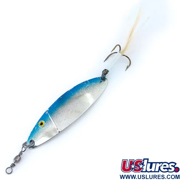 Con un peso di 7g (1/4oz), questo ondulante presenta un classico design italiano. La finitura è un'elegante combinazione Nickel/Blue, dove il dorso blu vibrante sfuma in una pancia argento-nickel testurizzata. Lungo 7cm (2 3/4"), il Panther Martin Cucchiaino Ondulante Lugano (Codice 12236) è equipaggiato con un'ancoretta piumata bianca. Il dressing in piuma è fissato al gambo dell'amo con una legatura trasparente, fornendo un punto focale visivo. Un piccolo occhio giallo realistico con pupilla nera è posizionato vicino alla punta, aggiungendo un dettaglio vitale al profilo. Per quanto riguarda la minuteria, viene fornito con una girella barrel pre-installata sull'anello spaccato di testa, pensata per ridurre la torsione della lenza durante il lancio o la traina. Il corpo in metallo stampato ha una curvatura distinta visibile nel profilo, tipica dei cucchiaini europei tradizionali prodotti in Italia. Questo esemplare non è mai stato usato, sebbene mostri alcuni lievi segni superficiali dovuti alla conservazione fuori dalla confezione originale.