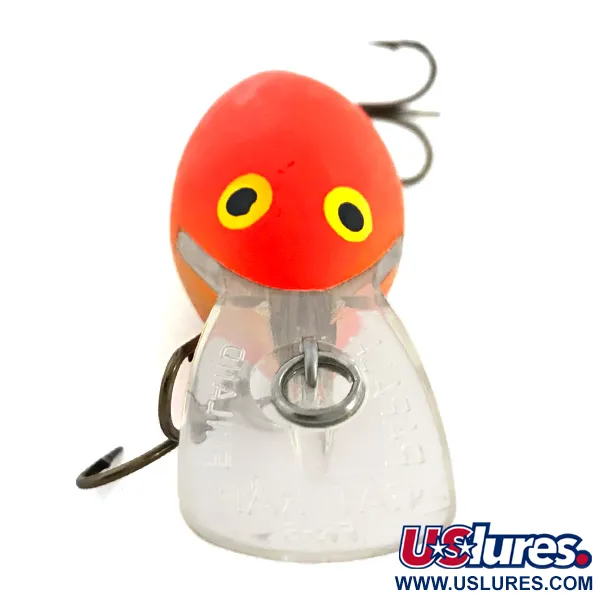 Realizzato in Finlandia, il profilo in balsa da 5 cm (2") di questo deep-diver è progettato per raggiungere profondità comprese tra 2 e 4,5 m (6,5 - 14,8 ft). La finitura arancione opaca di questo Rapala Fat Rap, identificato dal codice prodotto 6753, è caratterizzata da grandi occhi dipinti in giallo e nero sulla testa. Questo esemplare ha una valutazione delle condizioni di 3/5, con una piccola ammaccatura e una leggera rottura nella pellicola esterna vicino all'ancoretta di coda. La sua paletta in plastica trasparente e allungata è costruita per il lancio o la traina a specie come luccio, sandra e salmone. Con un peso di 8,8 g (1/3 oz), l'esca conserva le ancorette originali in pancia e in coda, che mostrano i segni del tempo trascorsi in una cassetta da pesca. Questo modello finlandese da 5 cm rappresenta un'epoca classica del design di esche deep-running di Rapala.