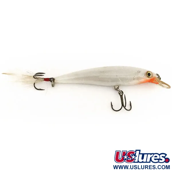 Con un profilo slanciato di 11 cm (4 1/4"), questo Rapala X-RAP Sureset presenta una finitura bianca su argento. Proveniente dall'Irlanda, questo esemplare ha una valutazione di 5/5, apparendo eccezionalmente ben conservato senza segni di usura visibili. Un sottile tocco di arancione si trova sulla zona della gola, proprio dietro la paletta in plastica trasparente, fornendo un classico punto focale per pesci predatori come black bass, persici, perca o lucci. La configurazione dell'hardware si nota per l'ancoretta posteriore piumata, che aggiunge una trama distinta alla coda dell'esca. Con un peso di 12,5 g (2/5 oz), l'esca è progettata per lavorare a una profondità di 0,6 - 1,2 m (2 ft - 4 ft). Questo modello, identificato dal codice prodotto 9540, è studiato per tecniche come stop & go, jerking, recupero costante, twitching e traina. Gli occhi 3D cerchiati d'oro sono ben allineati, completando il profilo da pesce esca comune a questa specifica produzione irlandese.