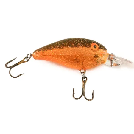 Particelle di glitter nei toni dell'oro e del rame sono densamente distribuite nella metà superiore di questo Rebel Crank R, creando un bellissimo contrasto sul suo corpo trasparente da 5 cm (2"). Identificata con il codice prodotto 11272, questa esca da 9,45 g (1/3 oz) è un elemento essenziale per chi apprezza la robustezza delle attrezzature vintage prodotte negli USA. La paletta trasparente presenta il logo Rebel stampato e guida l'artificiale a profondità di 0,9-1,6 m (3-5 ft) durante il recupero. La sua galleggiabilità lo rende ideale per lavorare intorno a strutture sommerse dove la finitura 'Transparent with Red Glitter' può emettere lampi efficaci. Questo esemplare è in condizioni eccellenti 5/5, senza alcun segno di utilizzo sugli ami o sulla finitura trasparente. Grandi occhi arancioni con pupille scure forniscono un classico punto focale sulla testa, tipico della serie Crank R di alta qualità prodotta da Rebel.