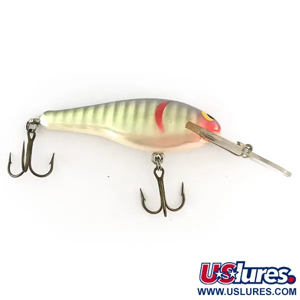 Scolpito nel legno di Jelutong, il corpo di questo Renegade Little Diver presenta una finitura perla con proprietà UV-reattive. Con un peso di 9 g (1/3 oz) e una lunghezza di 7 cm (2 3/4"), questa esca da casting è progettata per insidiare specie come cavedani e persici a profondità fino a 2 m (6,5 ft). La livrea è caratterizzata da bande verticali scure su fianchi perlacei, accentuate da un vistoso segno rosso sulle branchie dietro il classico occhio giallo e nero. Ogni esemplare della serie 8475 è stato rifinito a mano, assicurando un elevato standard qualitativo della struttura lignea. Questa specifica esca è in condizioni 5/5, mantenendo la lucentezza originale e ancorette affilate e prive di ossidazione. La paletta trasparente è saldamente integrata nella testa, posizionata per raggiungere la profondità desiderata mantenendo la galleggiabilità tipica del legno naturale.