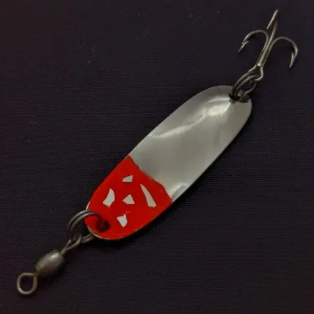 Lungo 4,5 cm (1 3/4"), questo ondulante presenta un classico profilo allungato adatto alla trota o ai piccoli predatori con attrezzatura leggera. La nichelatura stampata sulla metà superiore garantisce un bagliore costante, in contrasto con la sezione inferiore rossa che presenta dettagli bianchi. Con un peso di 4 g (1/8 oz), il Roy Self #2 è bilanciato per lanci in spazi ristretti o per lavorare lungo i bordi dei canneti. Una sottile superficie sagomata sul corpo metallico aiuta a frammentare il riflesso della luce, un tratto distintivo di questi design Roy Self. Catalogato con il codice prodotto 24587, questo esemplare è in condizioni 5/5 con una finitura pulita e transizioni di colore nette. Una girella a bariletto pre-installata in testa gestisce la torsione della lenza durante il recupero in acqua.