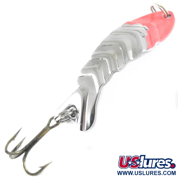 Con un peso di 8g (1/4oz), questo ondulante da lancio di produzione americana presenta un corpo striato distintivo progettato per riflettere la luce da più angolazioni. Lungo 5cm (2"), la superficie nichelata è completata da un vivace accento rosa sulla parte superiore, una combinazione di colori spesso utilizzata per la visibilità in varie condizioni dell'acqua. Il nome "SHARPIE" è stampato direttamente nel metallo sul lato inferiore, identificando l'esca insieme al codice prodotto 4234. Questo esemplare è in condizioni eccellenti (valutazione 5/5), caratterizzato da una finitura lucida e riflettente e vernice intatta. È armato con i suoi anellini originali e un'ancoretta affilata, a dimostrazione della qualità della sua produzione nazionale. La trama a scaglie del corpo principale offre un profilo fisico unico rispetto ai classici cucchiaini lisci.