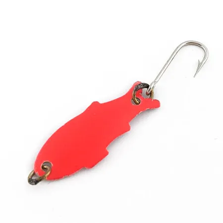 Sul retro di questo ondulante metallico è chiaramente impresso il nome 'SHOFF'S TRIPLE TEAZER', marchio distintivo della Shoff's Tackle Company dello Stato di Washington. Con un peso di 1/32 oz (1,1 g), questa esca ultra-light è sviluppata su un caratteristico corpo a forma di pesce rifinito con una livrea bicolore rossa e bianca. La parte frontale è rivestita da un pigmento rosso pieno, mentre il lato posteriore rivela la base metallica argento-bianca con la stampigliatura identificativa. Questo esemplare reca il codice prodotto 22344 e mantiene un grado di conservazione di 5/5, con una verniciatura ben preservata e componentistica originale. È equipaggiato con due anellini spaccati in ottone e un amo singolo con finitura argento, ancora affilato e pronto all'uso. Progettato per applicazioni finesse come lo spinning leggero o la traina a trote e panfish, la struttura dell'esca punta su un profilo che imita fedelmente il pesce foraggio.