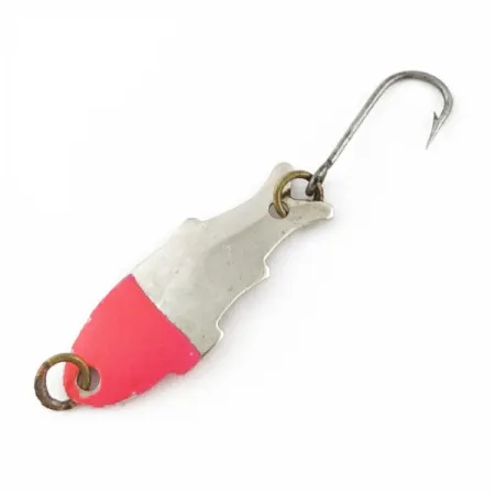 Una vivace finitura rossa copre la punta di questo ondulante da 1/32 oz (1 g), creando un netto contrasto con il corpo in nichel lucido. Conosciuto come Triple Teazer e prodotto da Shoff's negli USA, questo artificiale presenta un caratteristico profilo di pesce stampato nel metallo. Lungo 1 1/4" (3 cm), è equipaggiato con un amo singolo rivolto verso l'alto e anellini spaccati color ottone. Il codice prodotto 24071 identifica questo specifico modello ultraleggero, originariamente progettato per la presentazione delicata necessaria per la trota o i piccoli predatori. La superficie riflettente in nichel è abbinata a una sezione rossa opaca per fungere da richiamo visivo. Questo esemplare si presenta in condizioni eccezionali, con una valutazione di 5/5 grazie alla finitura intatta e alla componentistica pulita. L'amo singolo è fissato in coda, mentre l'occhiello di testa garantisce un punto di attacco solido per fili sottili.